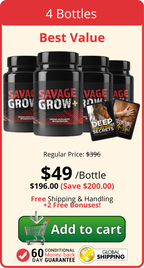 Savage Grow Plus is a supplement specifically formulated to support erection strength, penis enlargement, and overall sexual performance. Its advanced formula is backed by research and combines scientifically proven ingredients that help enhance blood flow, boost testosterone levels, and promote lasting sexual health.